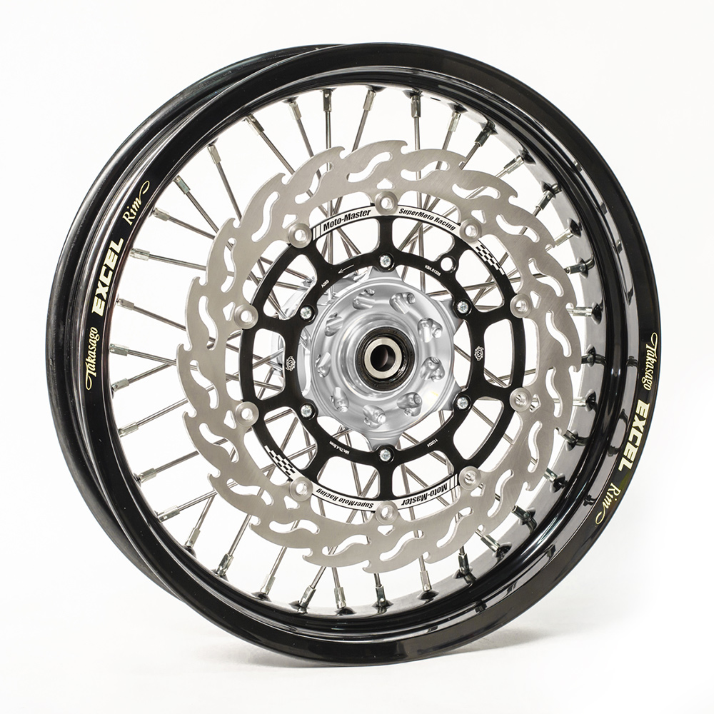 The Moto-Master Flame Supermoto Racing disc is designed specifically for use with our Supermoto Racing Caliper*. Its Flame design combines superior, controllable stopping power with optimal heat dispersion.
